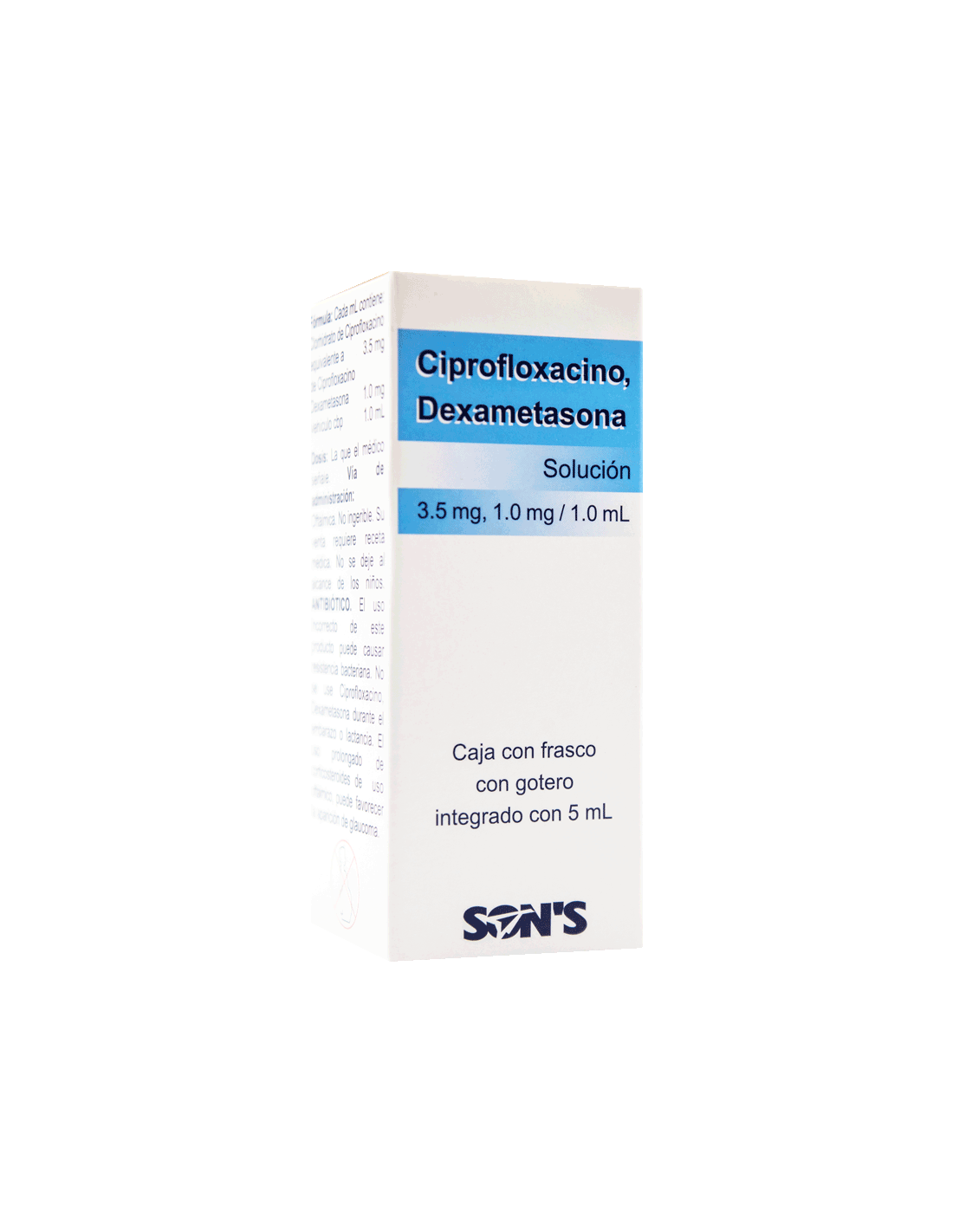 Cada mL contiene: Clorhidrato de Ciprofloxacino 3.5mg. Dexametasona 1mg. Vehículo cbp 1mL.