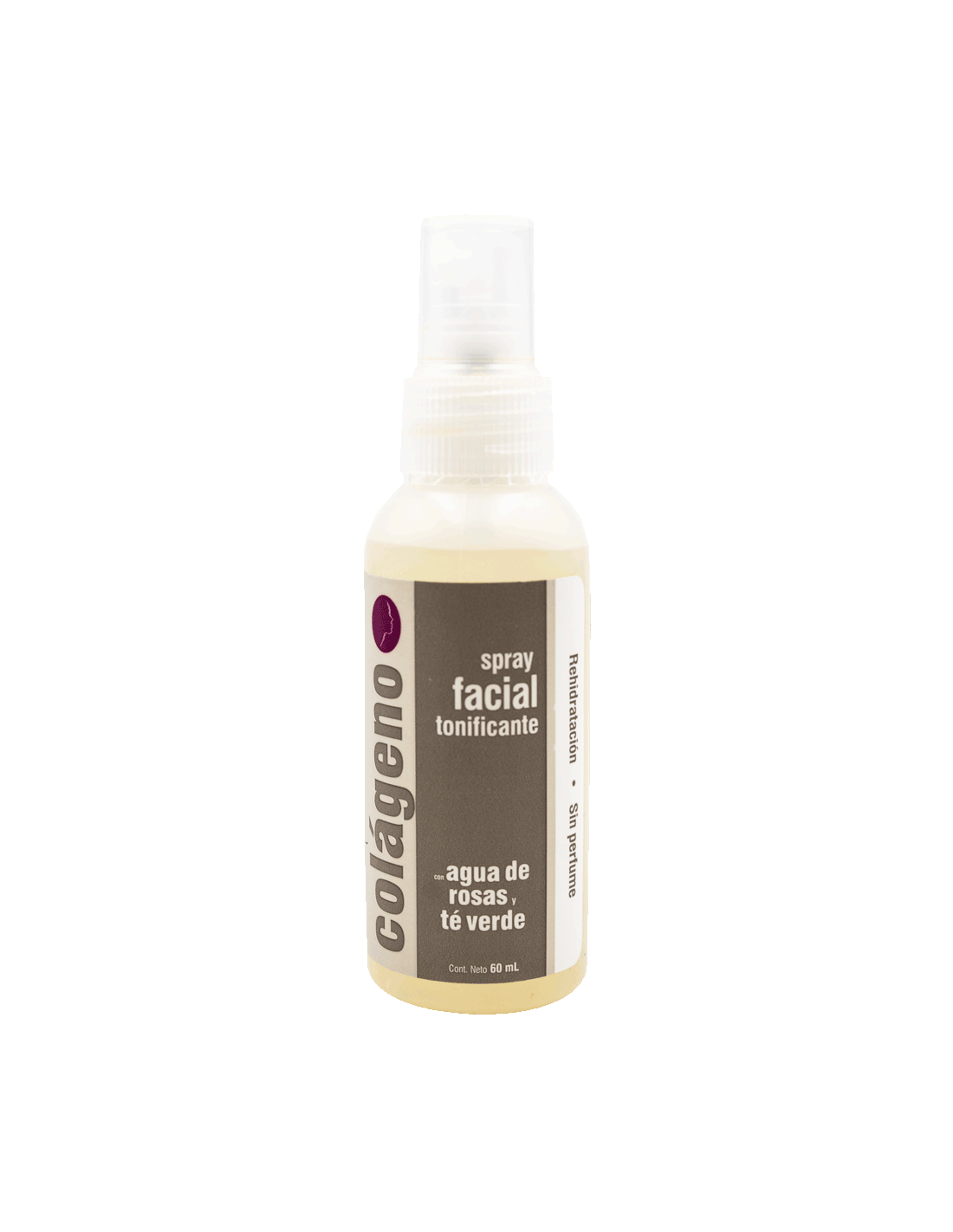 Spray Facial Tonificante de Colágeno, Agua de Rosas y Te verde, frasco con 60mL |