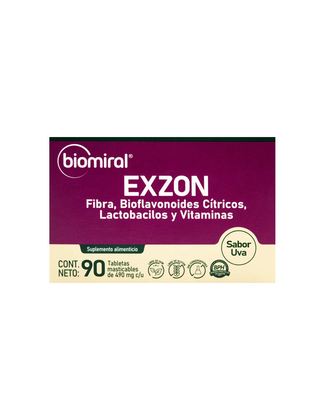 Ingredientes:Sorbitol, Fibra Soluble de Maíz, Lactosa, Ácido Ascórbico (Vitamina C), Bioflavonoides Cítricos, Sabor Uva, Lactobacilos (Bacillus Coagulans), Estearato de Magnesio, Dióxido de Silicio, Acido Málico, Laca Morada, Sucralosa, Palmitato de Retinol (Vitamina A) y Colecalciferol (Vitamina D3).