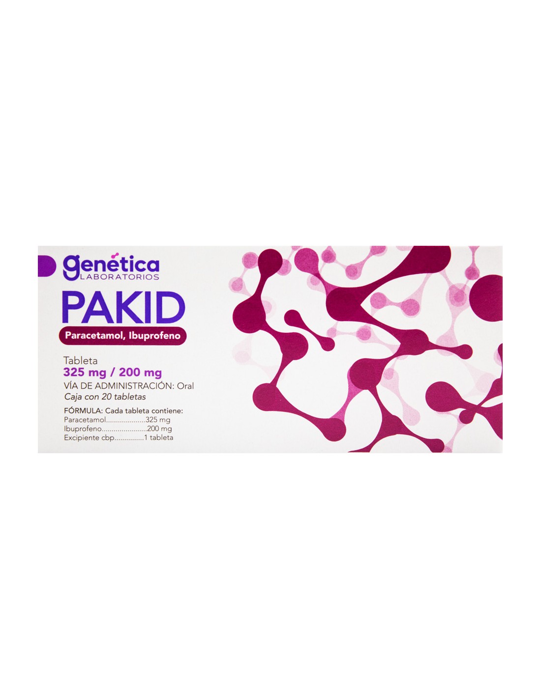 - Cada tableta contiene: Paracetamol 325mg. Ibuprofeno 200mg. Excipiente cbp 1 tableta.