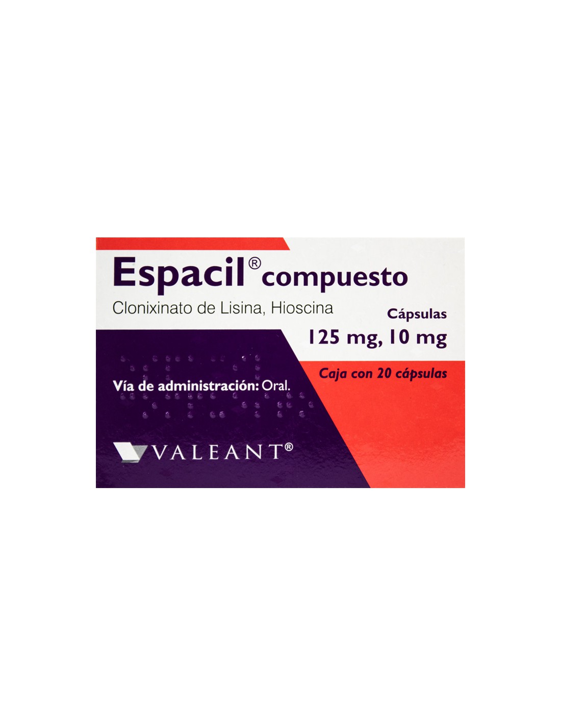 - Cada cápsula de contiene: Clonixinato de Lisina 125mg. Butilbromuro de Hioscina 10mg. Excipiente cbp 1 cápsula.