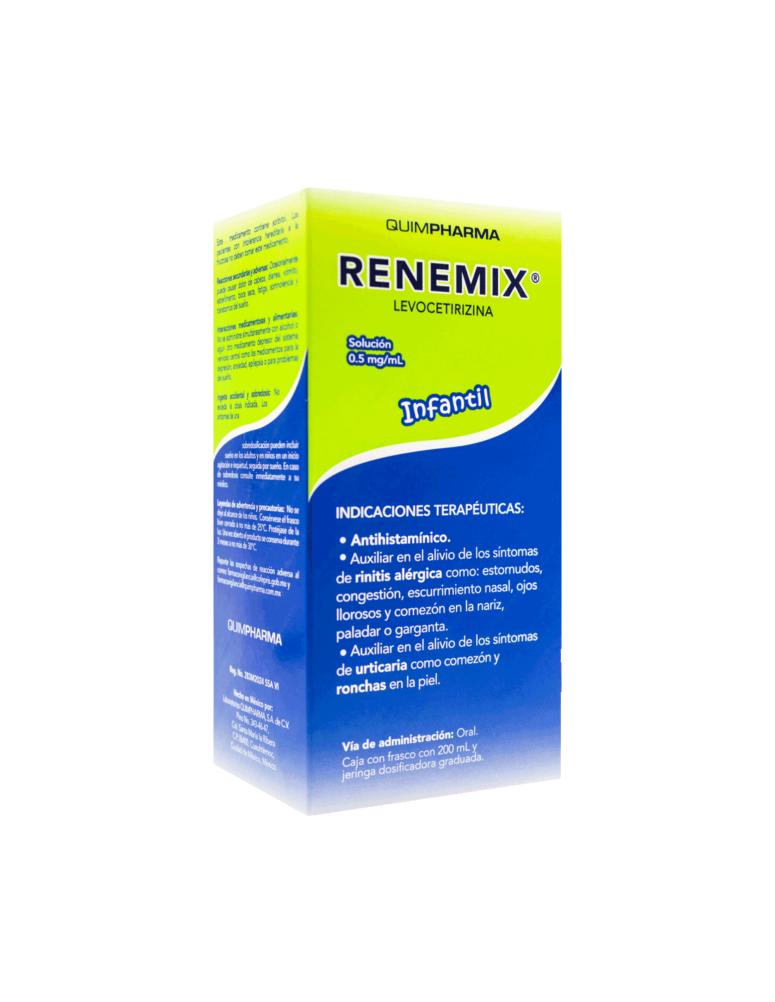 | Solución infantil de 0.5mg/mL Frasco con 200mL y jeringa dosificadora graduada. |