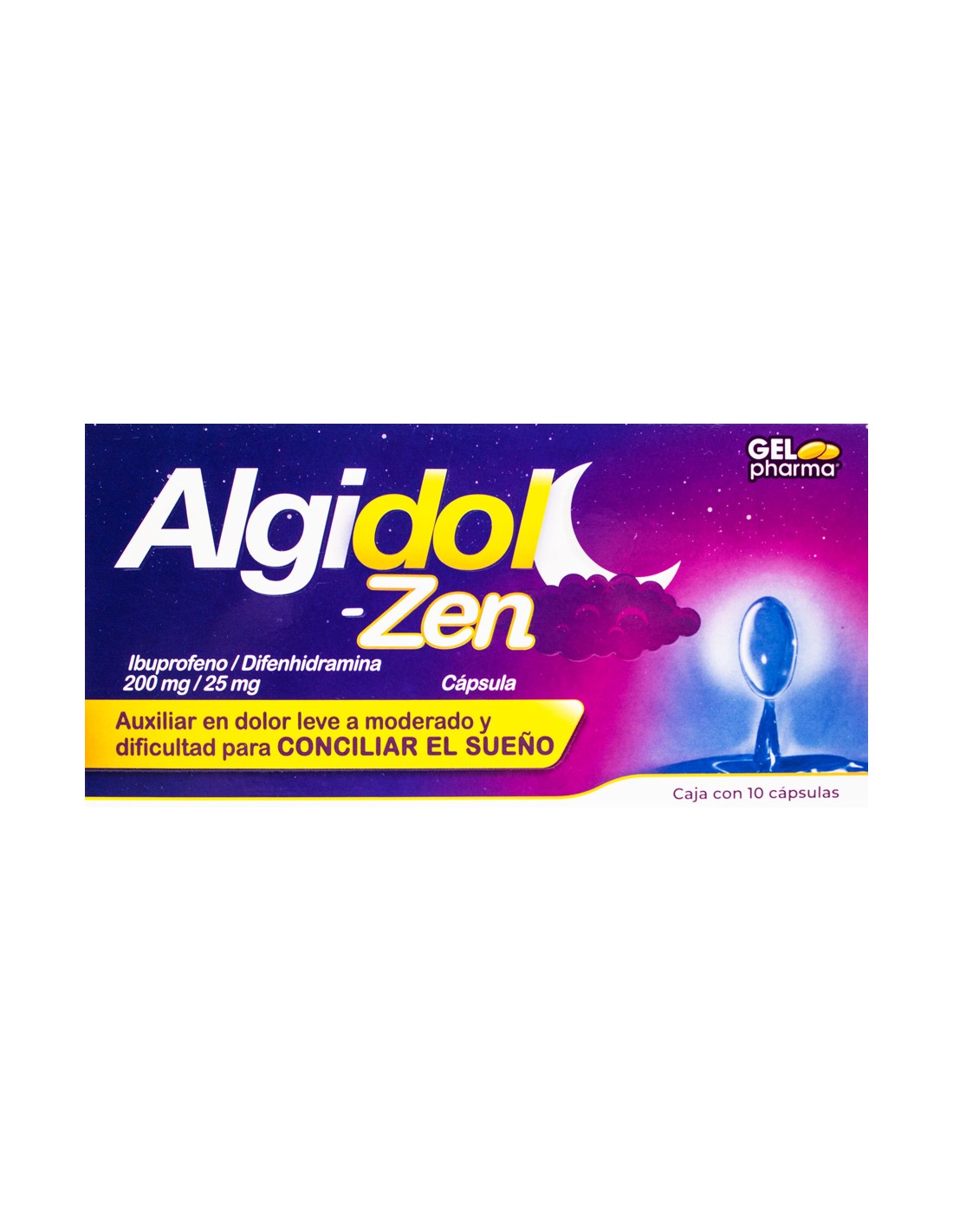 - Cada cápsula contiene: Ibuprofeno 200mg. Clorhidrato de Difenhidramina 25mg. Excipiente cbp 1 cápsula.