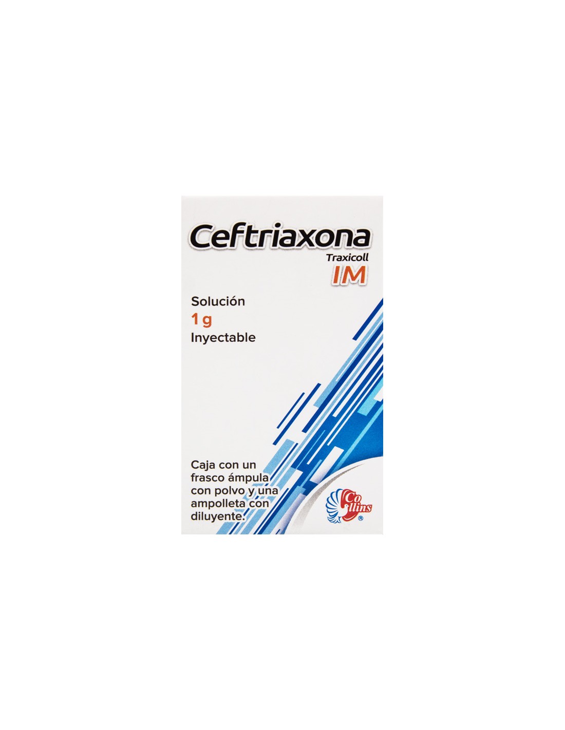 - El frasco ámpula con polvo contiene: Ceftriaxona sódica 1g. La ampolleta con diluyente contiene: 3.5 mL.