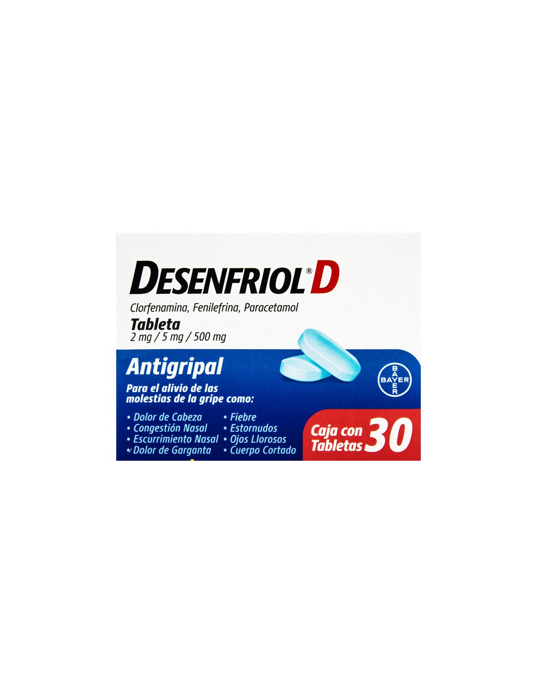 - Cada tableta contiene: Maleato de Clorfenamina 2mg. Clorhidrato de Fenilefrina 5mg. Paracetamol 500mg. Excipiente cbp 1 tableta.