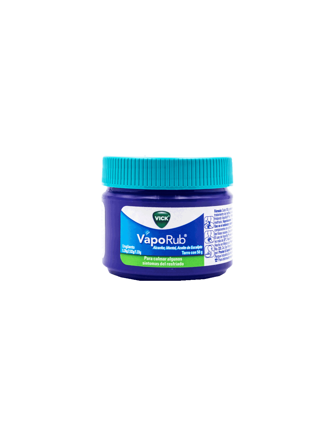 - Cada 100g contiene: Alcanfor 5.26g. Mentol 2.82g, Aceite de Eucalipto 1.33g, Excipiente cbp 100g.